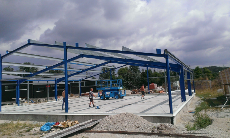 Das Satteldach ist die häufigste Dachform bei Stahlhallen. Es ist eine sehr wirtschaftliche Lösung und wird meist mit einer Dachneigung zwischen 5-20° verbaut. Gerade in Gebieten, in denen eine hohe Schneelast herrscht, bietet diese Form sehr gute Eigenschaften.
