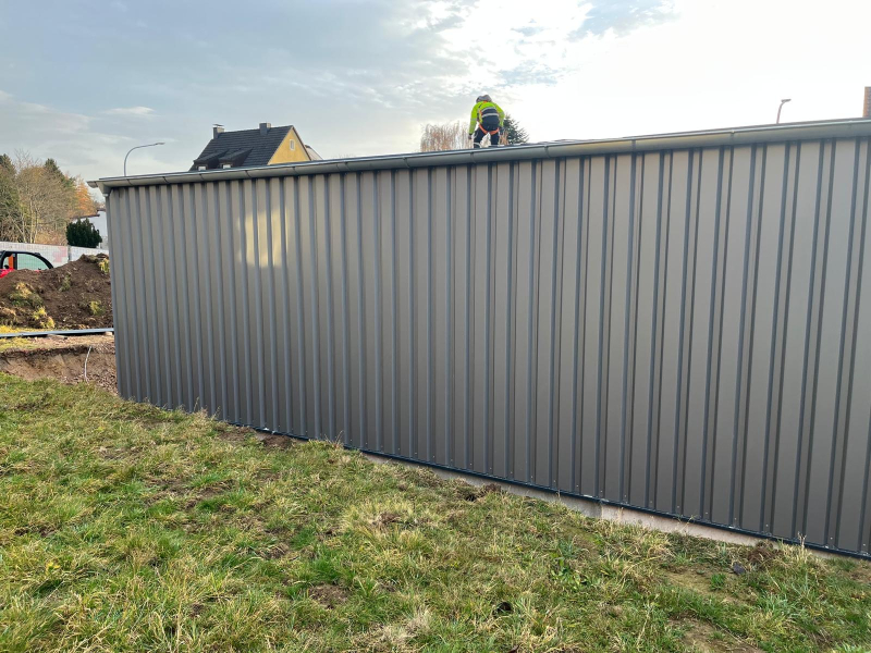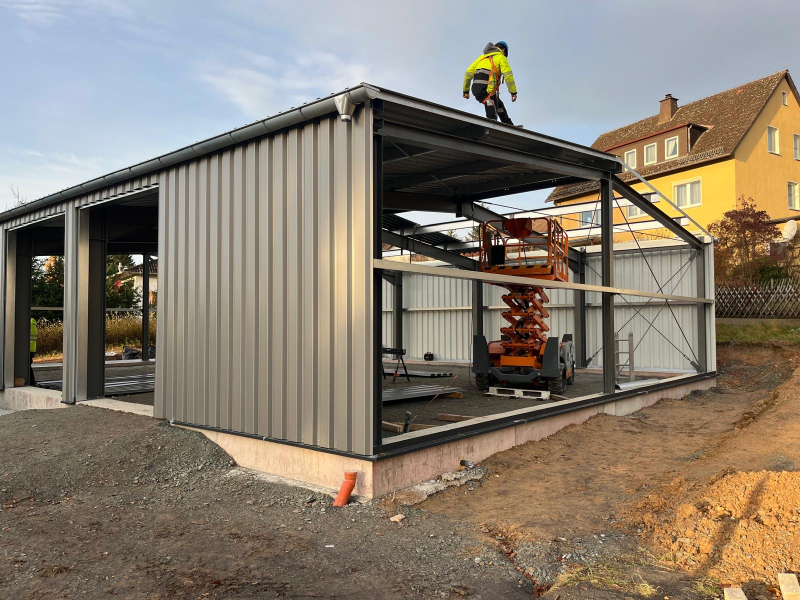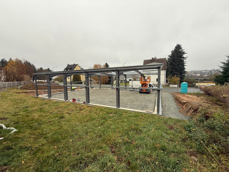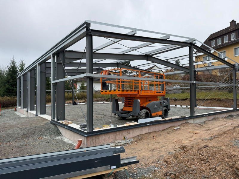 - Stahlkonstruktion auf bauseitige Streifen- bzw. Punktfundament montiert