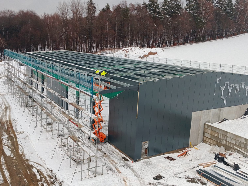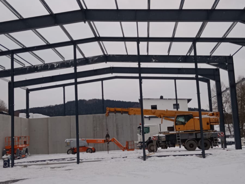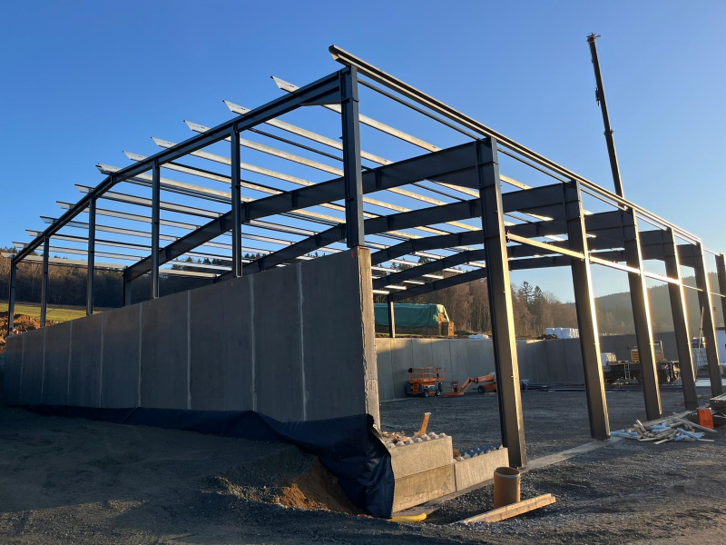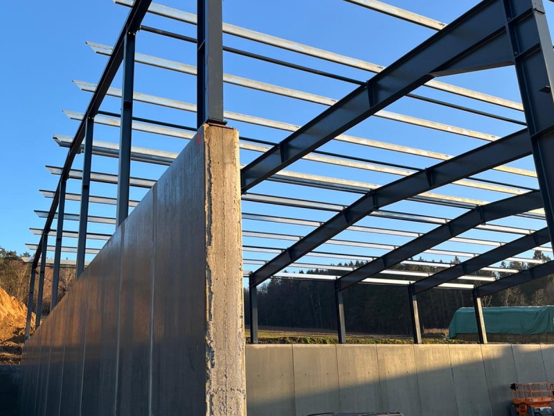 - Stahlkonstruktion teils auf bauseitige Betonhohlwand montiert