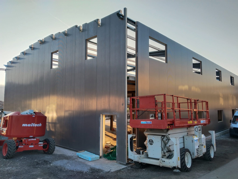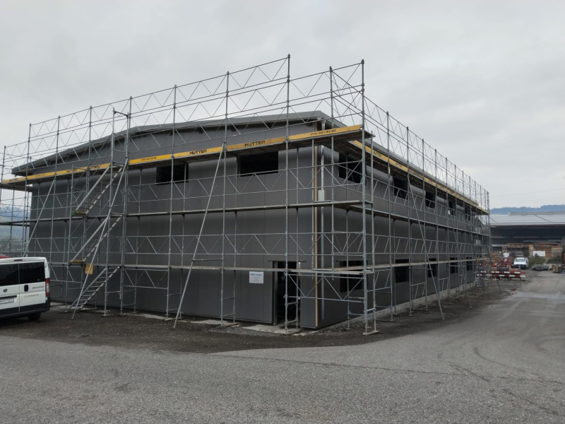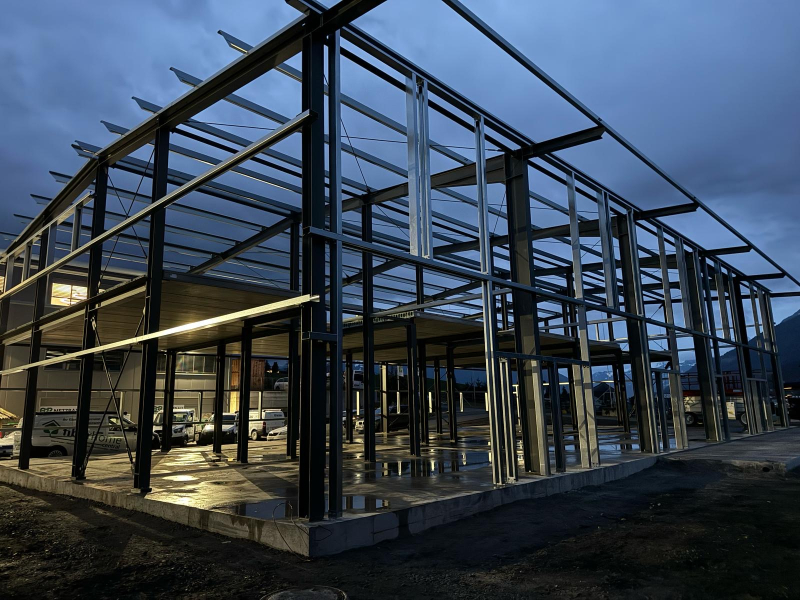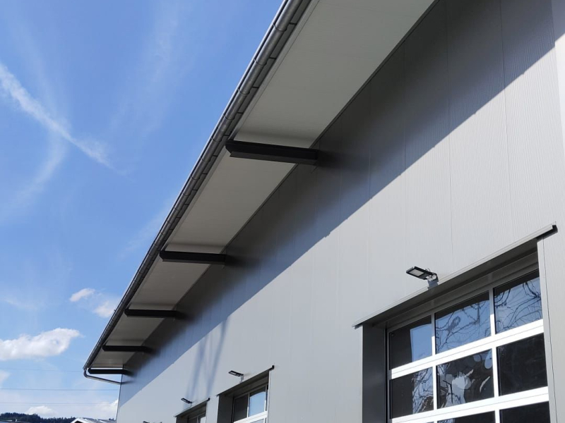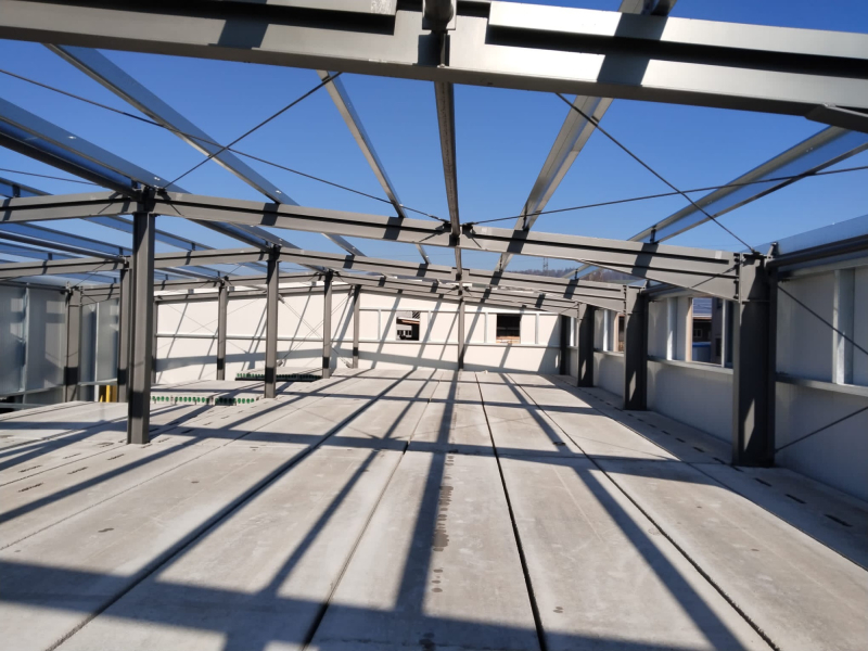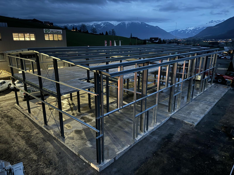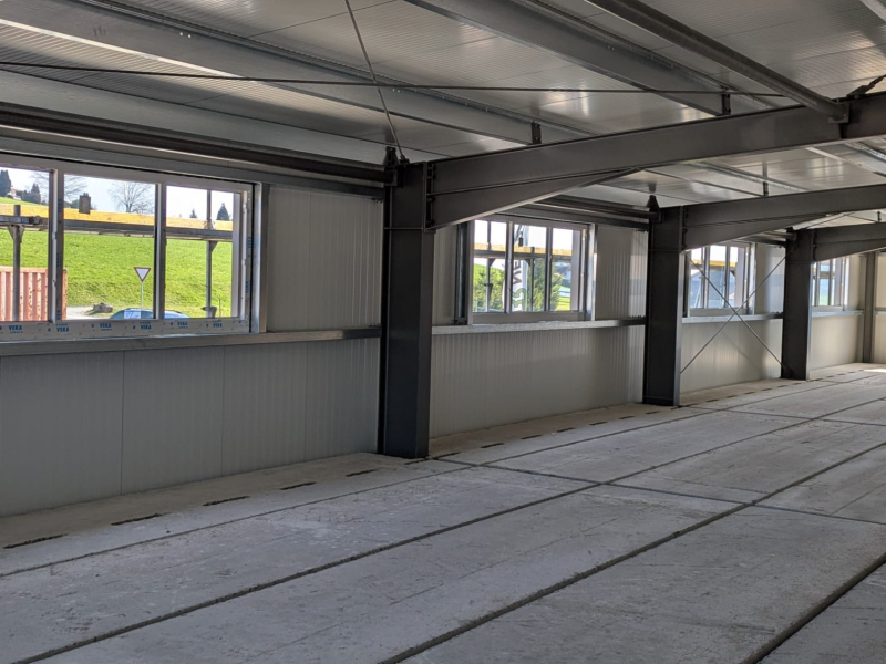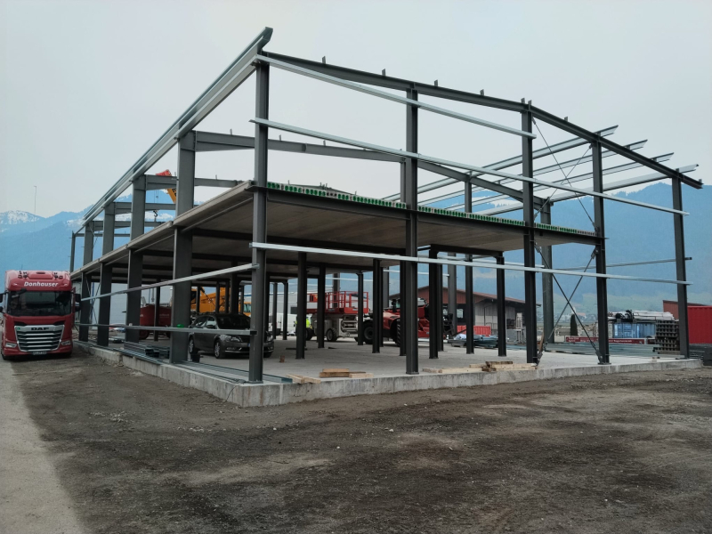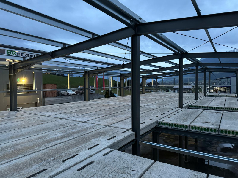 - Stahlkonstruktion inklusiver Kragarme und Deckenriegel für Fertigteildecke