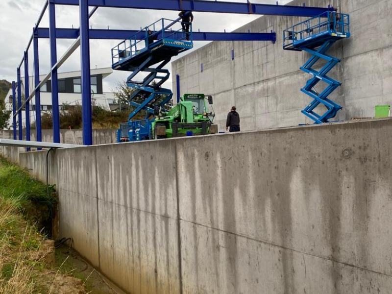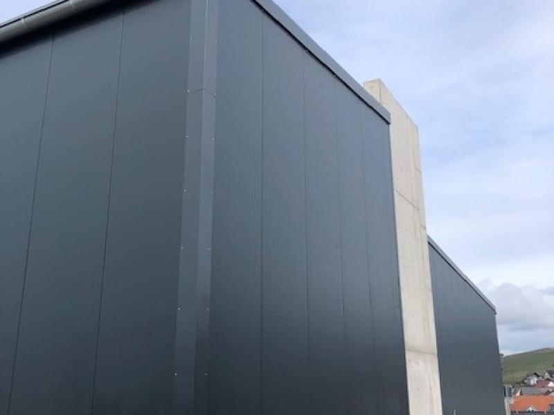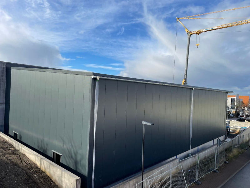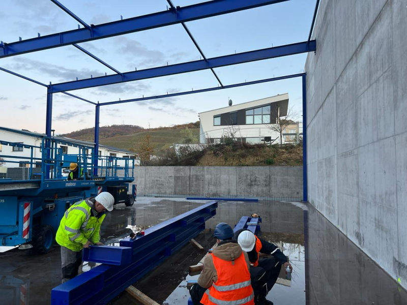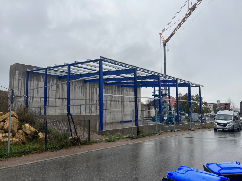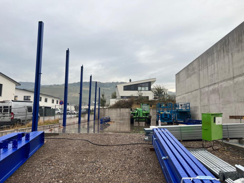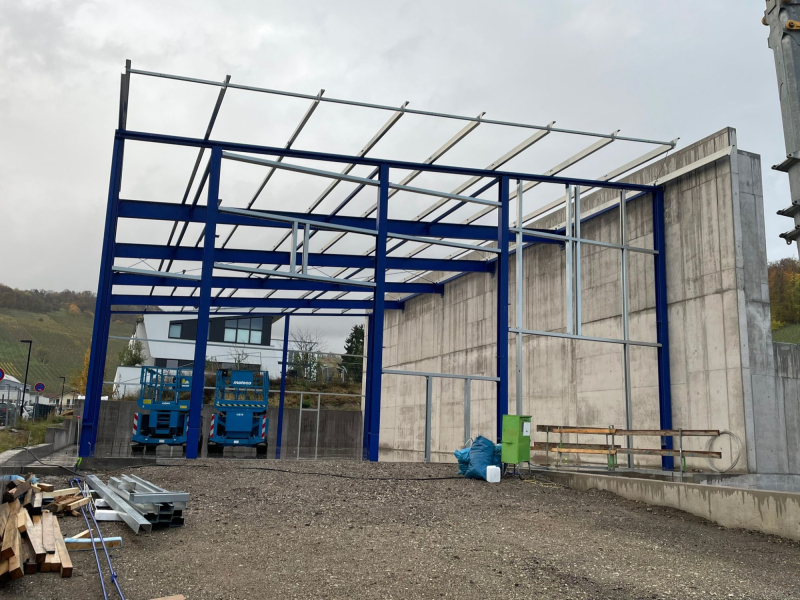 - Stahlkonstruktion (teils an bauseitiger Brandwand angebaut)