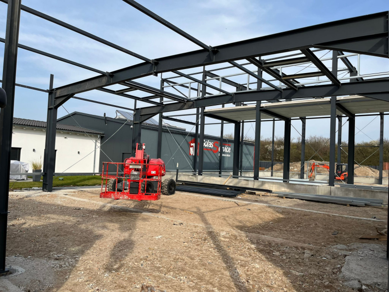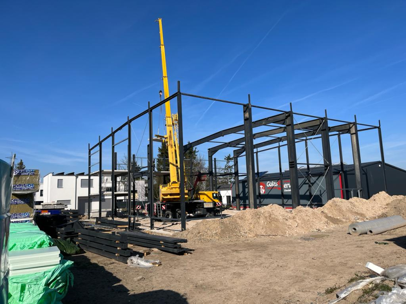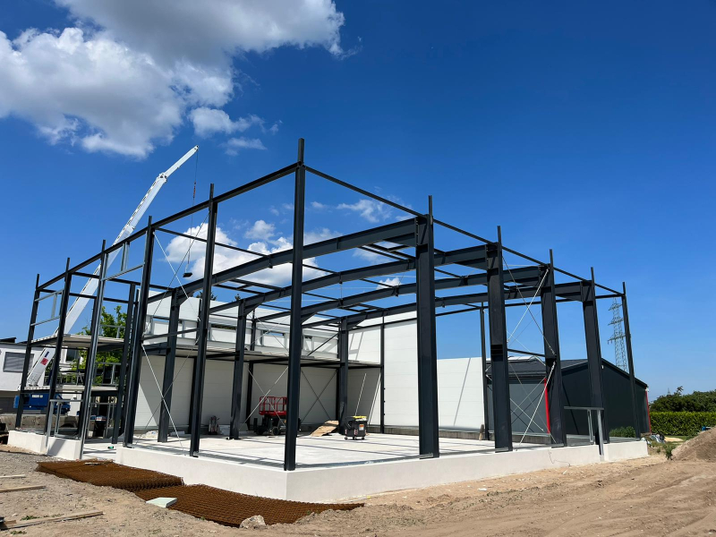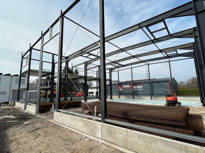 - Stahlkonstruktion teils mit ersten Grundanstrich in F30