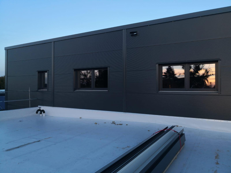 - Warmdachaufbau teils mit Mineralwollfüllung zwecks Brandschutz