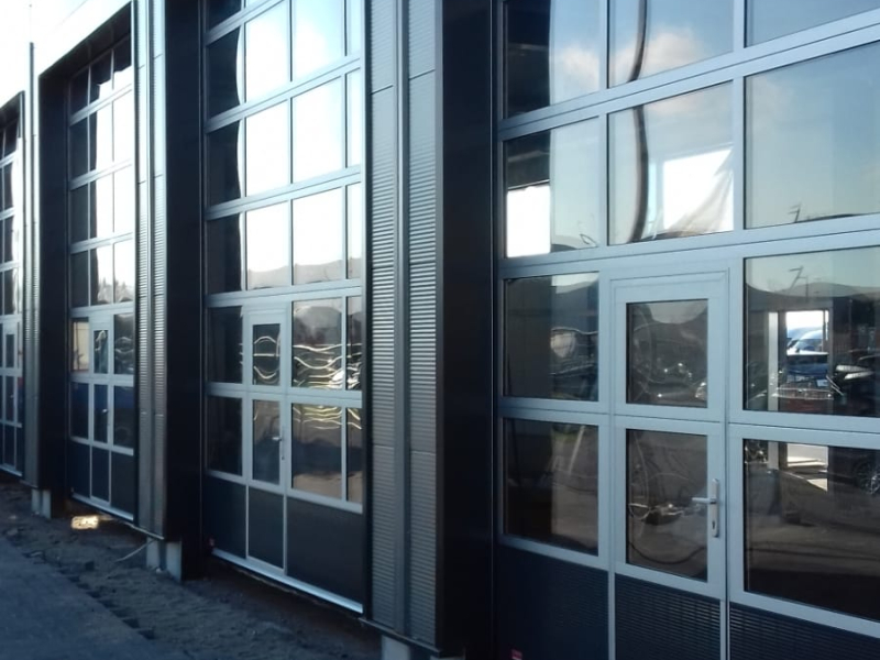 - Sektionaltore 4,00 x 4,80 m voll verglast (Teils mit Schlüpftüre, Hebung im Dachverlauf)