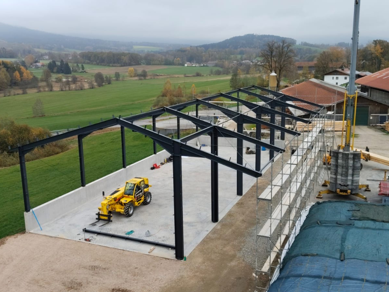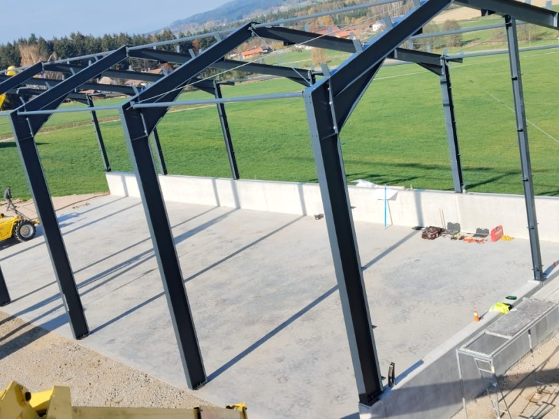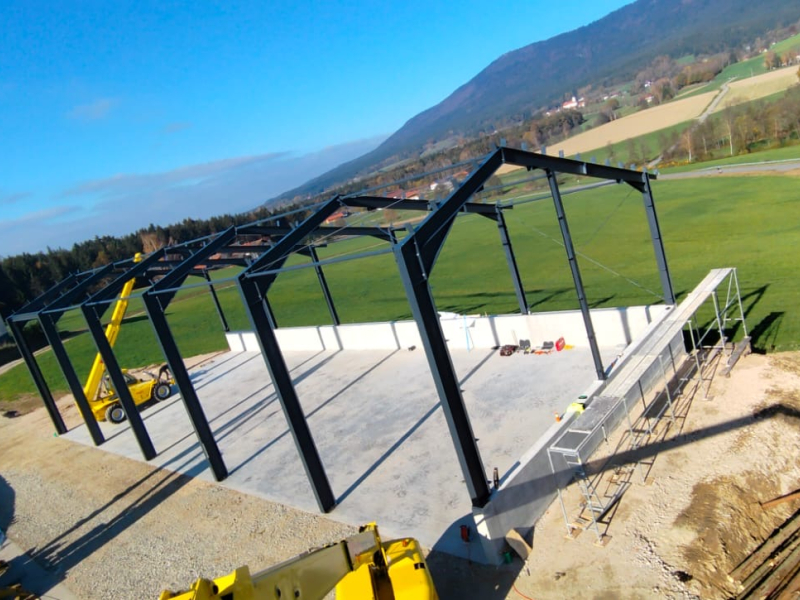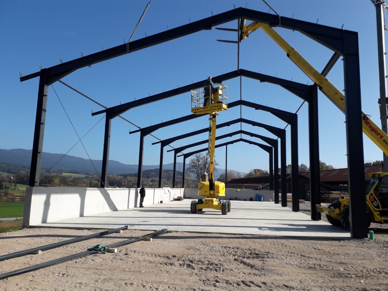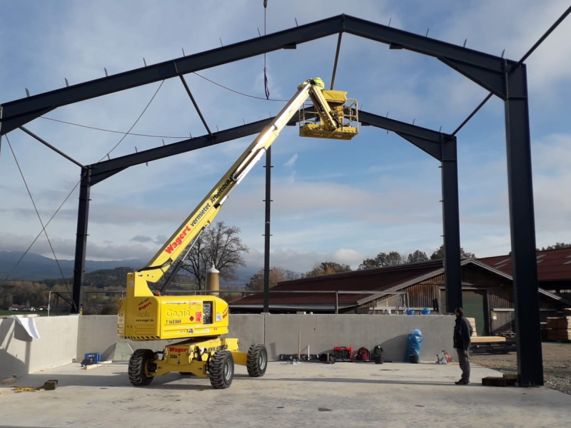 - Stahlkonstruktion inkl. Kragarmen sowie Stahlträger zur Aufnahme eines bauseitigen Krans