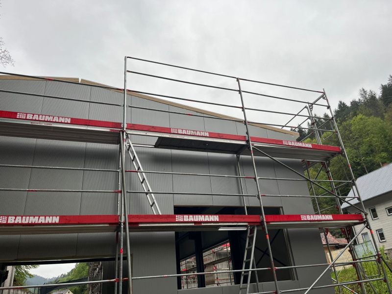 - Bauvorhaben erstreckt sich über zwei Bauabschnitte (BA1: Umbau der Lagerhalle, BA2: Neubau einer Werkstatt mit Büro sowie Umbau und Erweiterung Bestandshalle